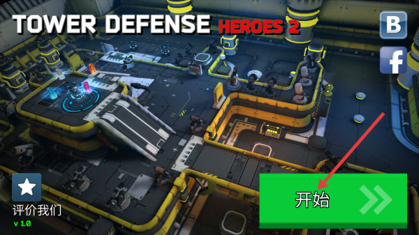 1、点击【开始】按钮,进入【TOWERDEFENSEHEROES2】,开启塔防战斗之旅。