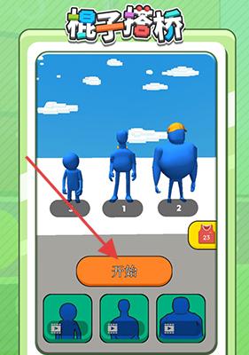 1、打开【棍子搭桥】,选角色后点【开始】,进入游戏关卡,准备用棍子搭建路径闯关。