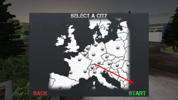 1、进入游戏后选择初始卡车,在车库界面完成车辆检查,前往货运市场领取首个运输任务,根据导航规划欧洲城市间的驾驶路线。