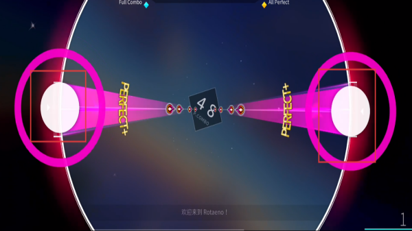Rotaeno旋转音律是全球首款应用手机陀螺仪功能的体感音乐作品,玩家需像驾驶重力感应赛车般通过左摇右晃手机,控制音符轨道并结合指尖点击滑动等操作,在动感音乐中匹配不断跃出的音符,该作品采用顶级3D引擎打造动态光影与立体场景,带来视觉效果与操作反馈,高度同步的沉浸式音游体验。