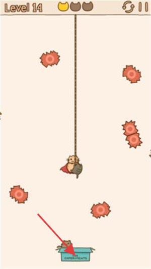 3、操控猫咪下落,让其精准落入下方容器(如Level14的蓝色箱子),完成关卡目标。