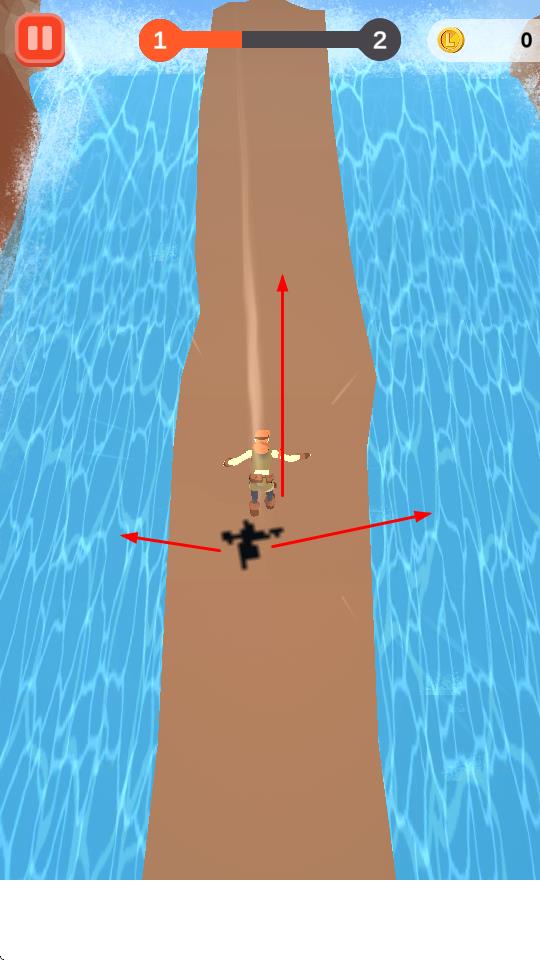 1、控制角色在水上窄道奔跑,保持平衡,沿路径前进,避开落水,挑战关卡。