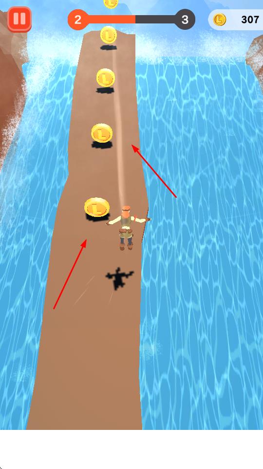 2、奔跑中拾取金币,积累财富,可用于解锁角色、升级属性,助力后续关卡。
