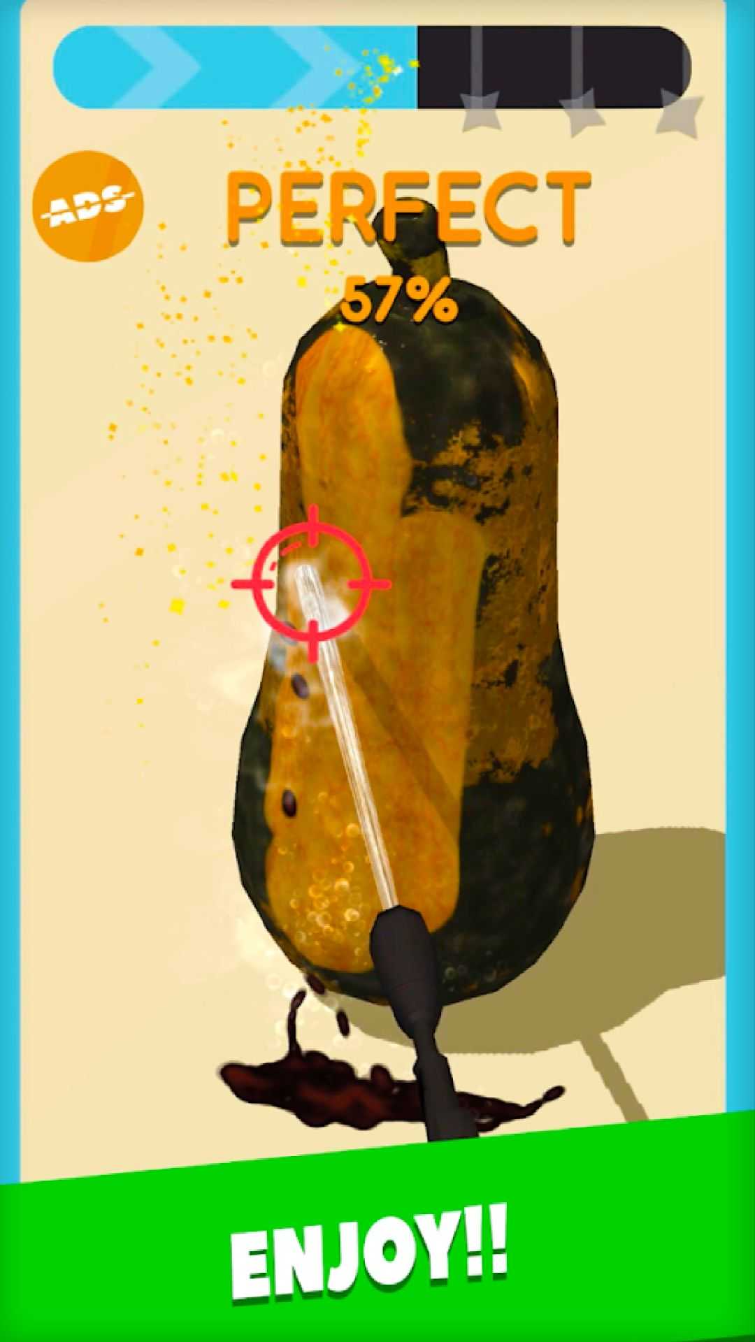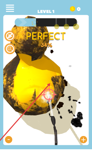 1、在LEVEL-1,操控清洗工具对准物体,依据【PERFECT】提示精准清洗,积累进度完成关卡。
