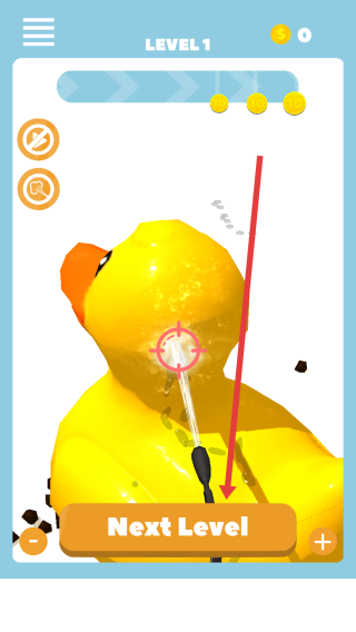 2、LEVEL-1清洗黄色小鸭达标后,点击【Next-Level】进入下一关游玩,开启新清洗挑战。