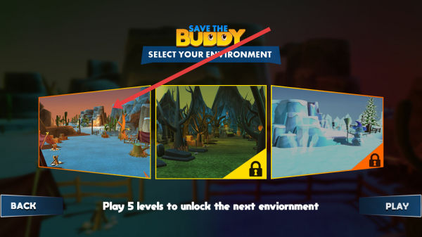 1、进入SAVE-THE-BUDDY游戏主界面,点击中间橙色播放键,正式开启救援伙伴的冒险之旅,准备应对后续挑战。