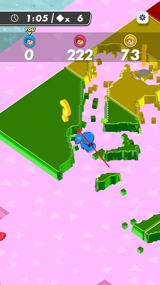 2、实时多人对战:3人实时在线匹配,同屏竞技争夺果冻资源,观察对手走位,预判切割路线,灵活调整策略,在有限时间内获取更高分数。