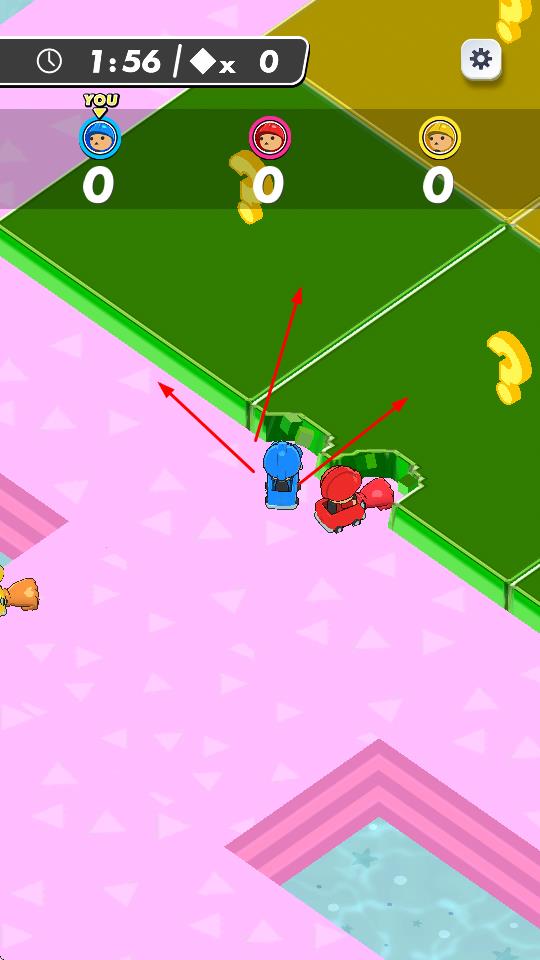 1、操控角色在地图移动,破坏绿色围栏,占领土地,扩大己方领地范围,对抗其他玩家。