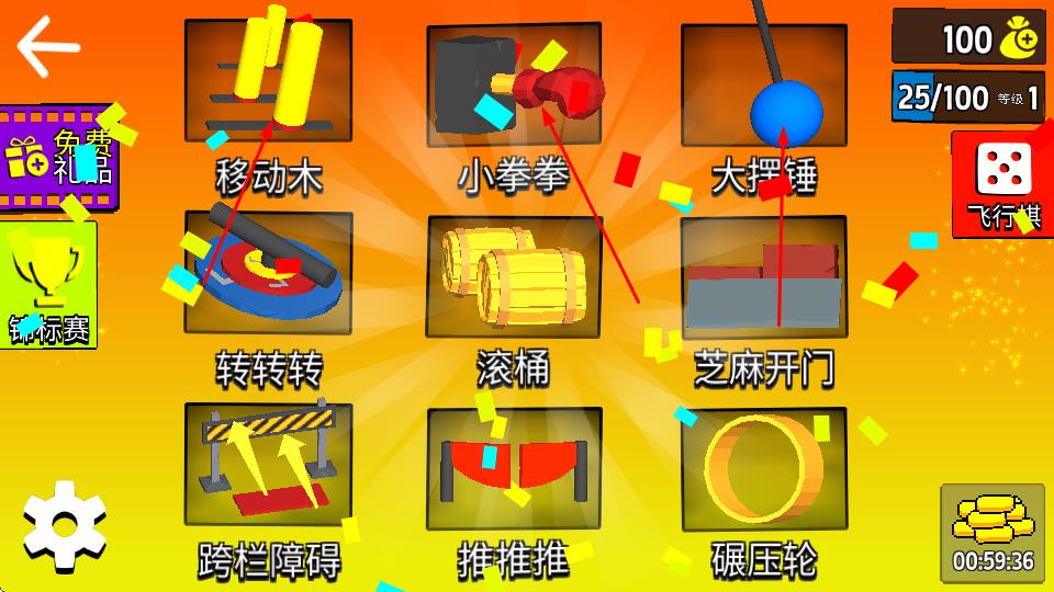 1、在武器界面挑选“移动木”“大摆锤”等道具,不同武器有独特效果,助力战斗、干扰对手。