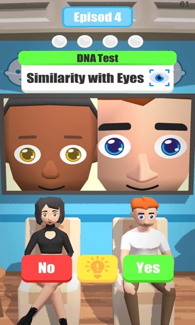 谁是孩子的父亲是一款兼具魔性与趣味的寻父解谜手游,玩家将置身于充满戏剧性的卡通世界,化身为一位敏锐的亲子侦探,肩负起帮新手妈妈从众多男性角色中找出孩子亲生父亲的重任,采用3D西方动画风格,以夸张的人物造型、生动的表情神态和色彩鲜明的场景,营造出轻松诙谐的氛围。