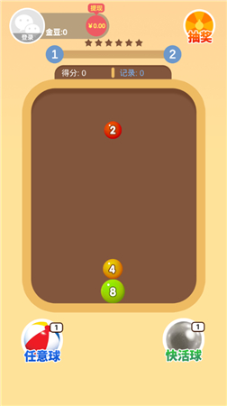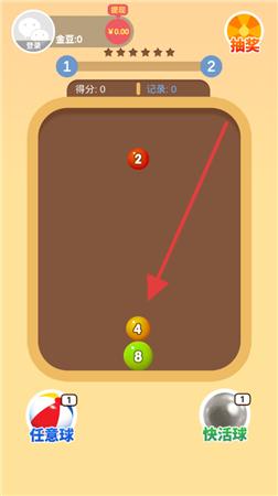 1、进入合成界面,拖动数字球(如2、4、8),相同数字球合成更大数字,积累得分。