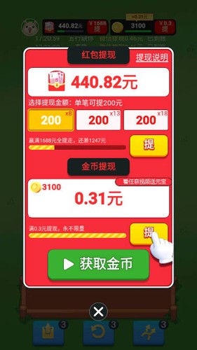 3、红包获取攻略:每日完成“新手任务”(消除50块砖、集结10只羊)保底拿红包碎片;邀请新玩家注册可解锁“师徒奖励”,加速提现进度。