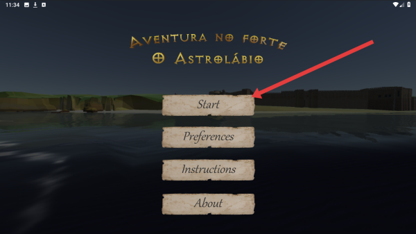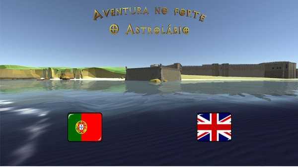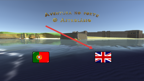 1、在【AVENTURA-NO-FORTE-ASTROLÁBIO】初始界面,选英国国旗,确定语言/区域设置,开启游戏准备。