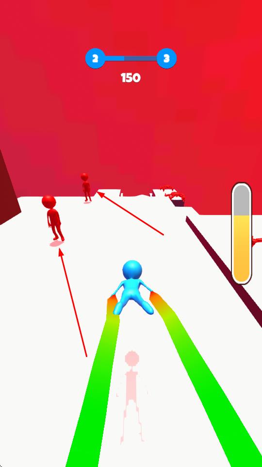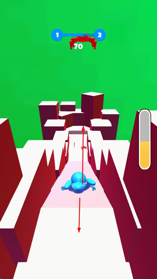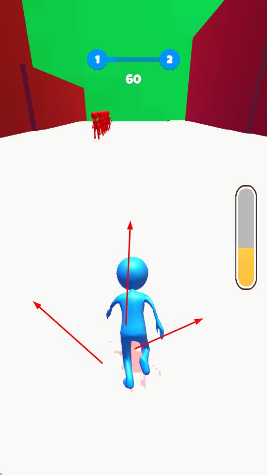 1、操控蓝色小人在赛道奔跑,躲避障碍,按箭头指引方向,保持前进。