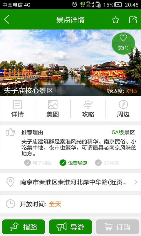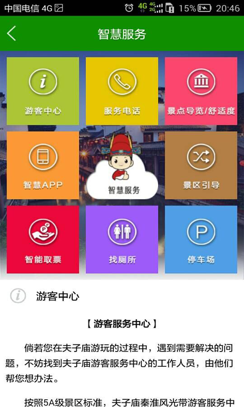 智慧夫子庙app是一款专门为南京智慧夫子庙景区的游客打造的一款智慧旅游服务平台,用户使用软件,可以对景点、旅游线路、美食地图等一览无余,还可以在线购买景点门票等服务,直接使用手机进行支付,对于去南京夫子庙景区旅游的朋友来说是一款非常有用的软件,需要的赶快来下载体验吧!