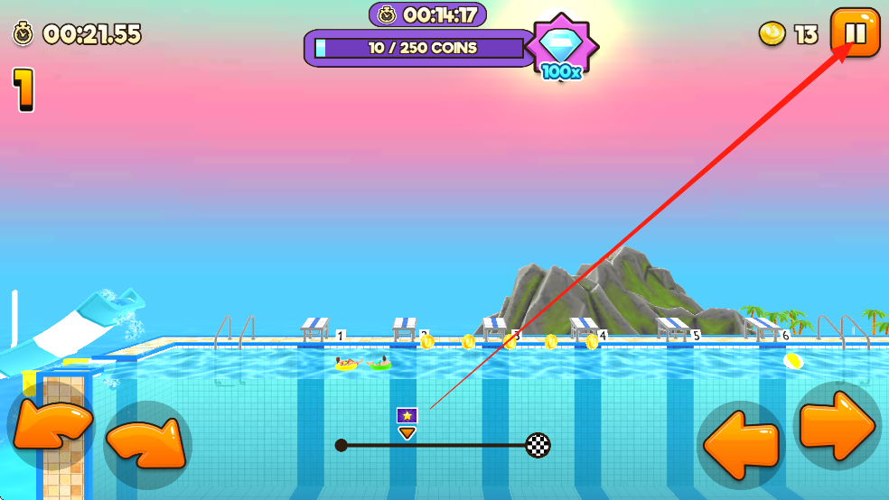 3、成就收集体系:隐藏在各赛道的秘密捷径与收集任务,完成全三星通关解锁水上乐园设计师身份,可自定义编辑滑道曲率与障碍布局,激发玩家创造力。