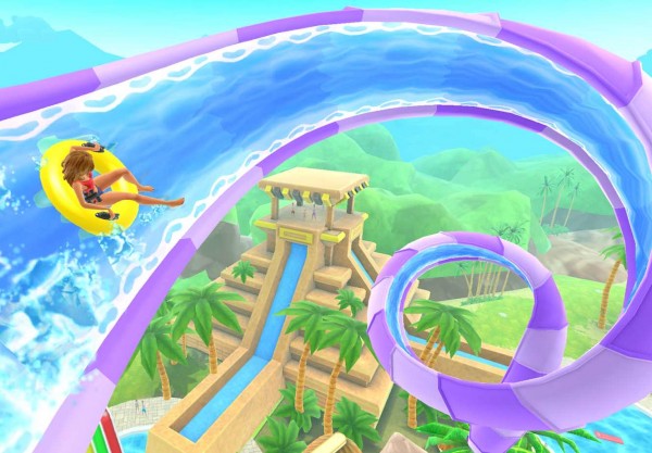 1、视觉清凉国度:卡通渲染的水上乐园场景,透明滑道折射波光粼粼的水纹,搭配彩虹、喷泉等动态元素,结合轻快的电子音乐,全方位营造夏日避暑的沉浸式体验。