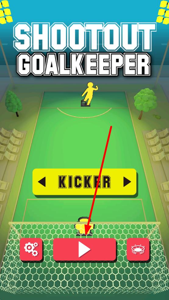1、点击开始按钮进入关卡,观察守门员站位,预判其扑救方向,准备操控球员踢球。