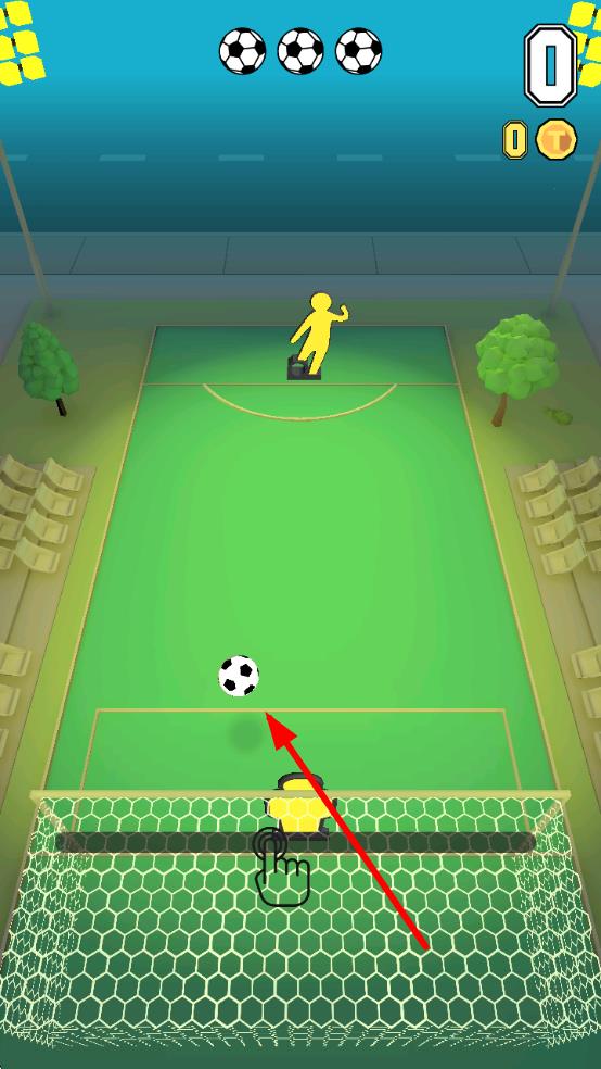 2、在足球下落过程中,点击并滑动屏幕,调整踢球方向与力度,尝试避开守门员完成射门。