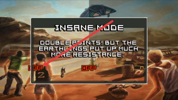 2、在模式选择弹窗中,选择启用【INSANEMODE】,体验双倍积分但地球人抵抗更强的高难度玩法。