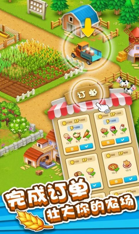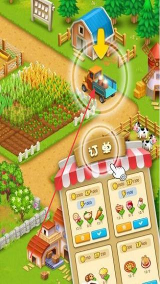 1、在农场场景,点击“订单”,派卡车配送作物,完成订单获取奖励。