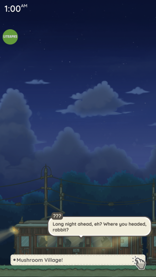 1、属于月兔冒险系列,从画面风格、角色对话等可识别,夜晚天空、云朵、电车、电线杆,还有LIVENGS(是界面标识)。