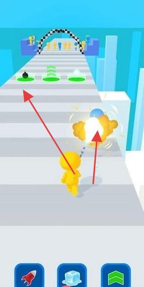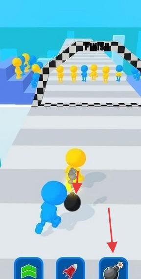 2、拾取或解锁炸弹、火箭等道具,点击释放,攻击前方敌人,清除竞争障碍。