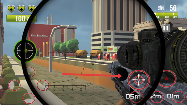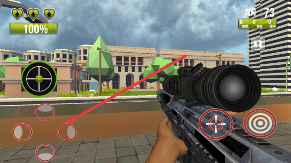 2、游戏中,通过左侧虚拟摇杆移动角色,调整射击位置,可以利用右侧按钮瞄准,应对城市环境中的目标。