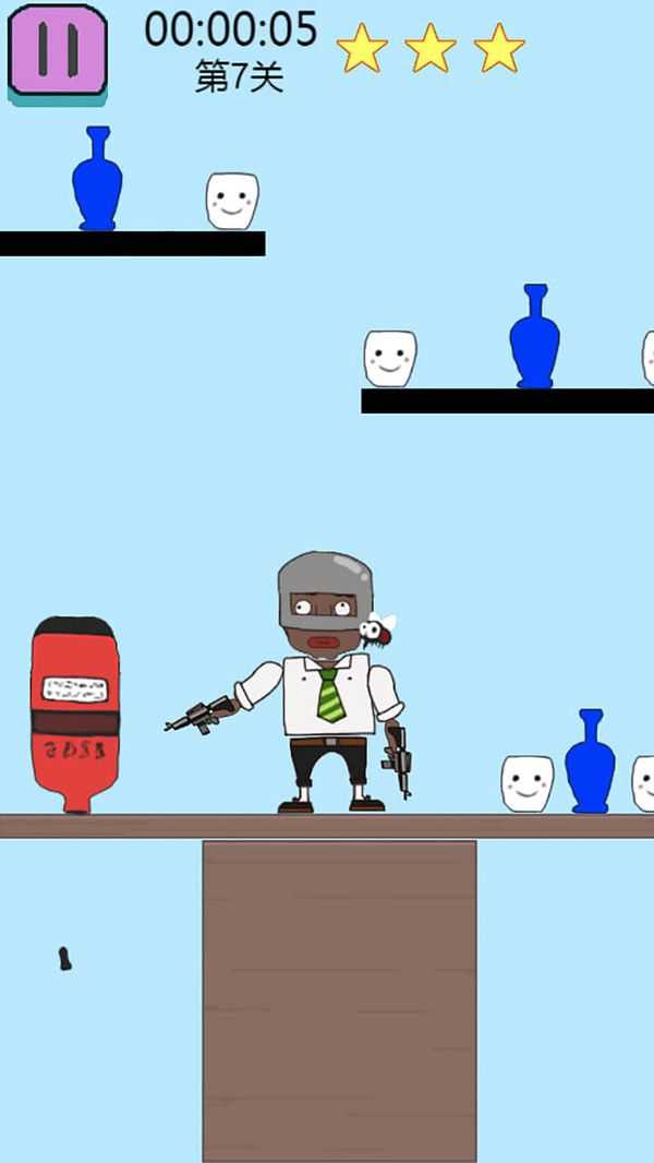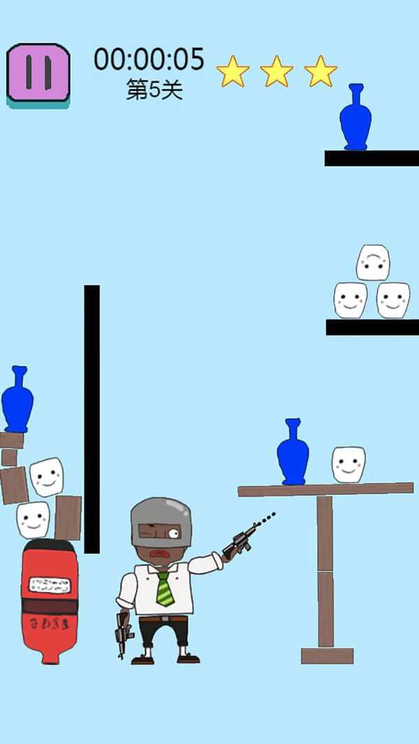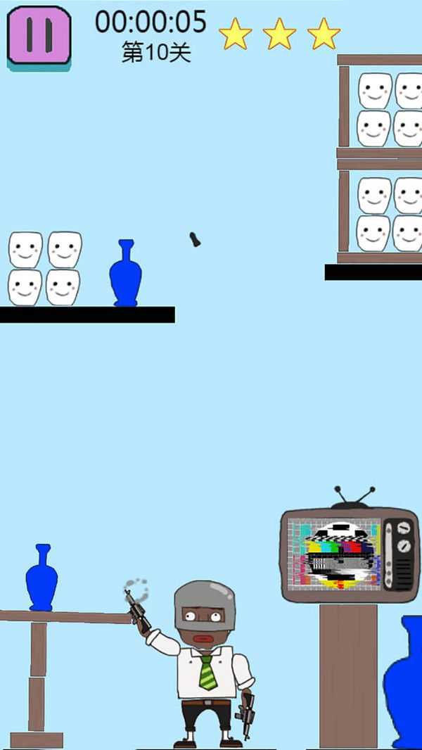 3、恶搞美术风格:采用夸张卡通画风,角色动作与武器特效充满无厘头幽默感,营造轻松解压的射击氛围。