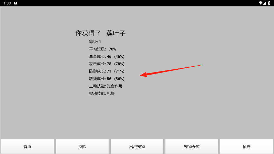 3、拿到莲叶子宠物,了解成长属性,根据敏捷等特点,在战斗中合理染色、释放技能。