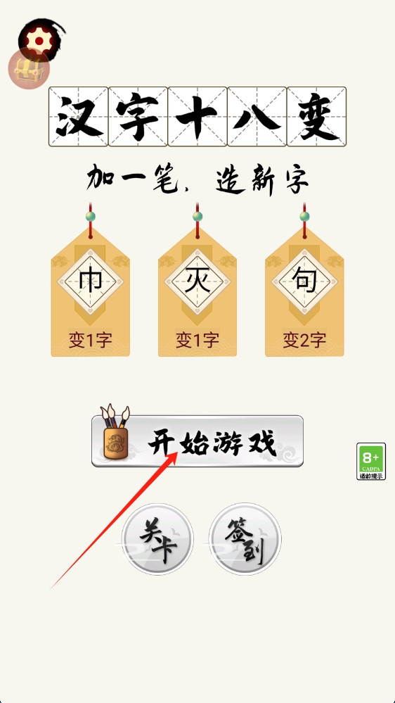 1、点击开始,指事等造字法破解谜题,利用连续完成高难度关卡触发"汉字大师"状态,通过暂停功能整理思路。