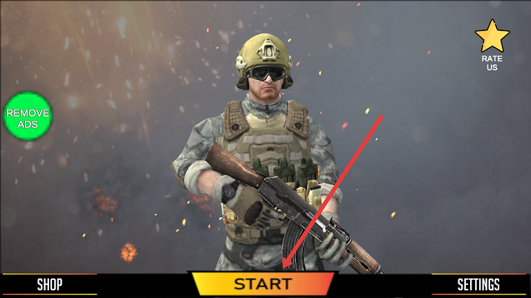 1、点击START进入,左手搓虚拟摇杆让铁鸟悬停,右手戳屏幕开火。