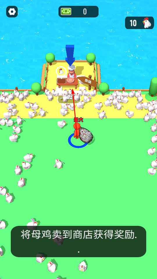 2、将收集的母鸡送到“商店”区域,完成交易获得金币,积累财富用于后续发展。