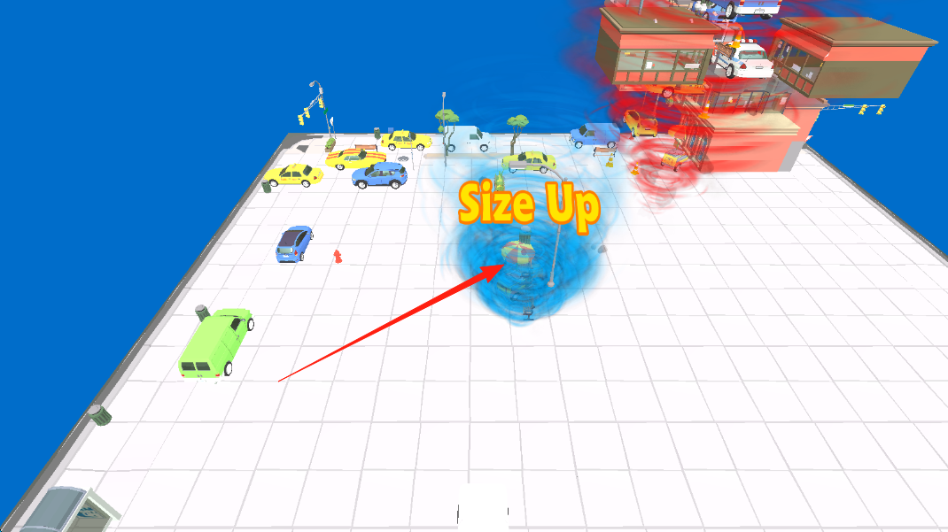 2、操控车辆靠近漩涡,使其被吸附,不断吞噬壮大,尝试让漩涡“SizeUp”提升等级。