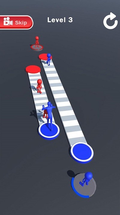 1、进入游戏选择单人闯关或多人模式,滑动屏幕操控橡皮人在赛道上移动,点击屏幕跳跃躲避旋转齿轮、地刺等陷阱,收集沿途金币。