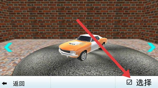 2、浏览车辆细节后,点击界面右下角“选择”按钮,确认驾驶橙色赛车,顺利进入赛道场景,准备开始比赛。