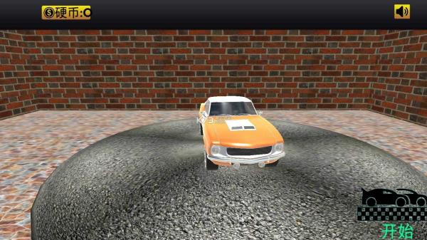 1、在汽车展示场景,点击右下角“开始”标识,选定橙色复古赛车,进入竞速准备界面,即将开启刺激赛道挑战。