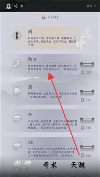 2、消耗获得的金币来解锁和培养奇术和武学。