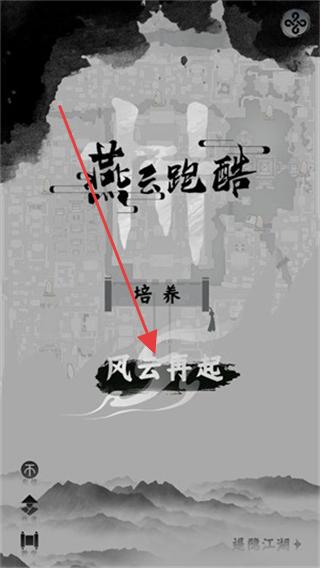 1、初次玩燕云跑酷先点击风云再起开始闯关。