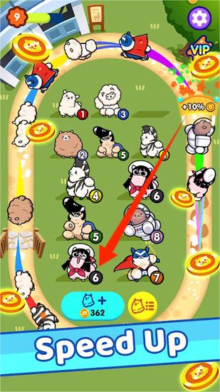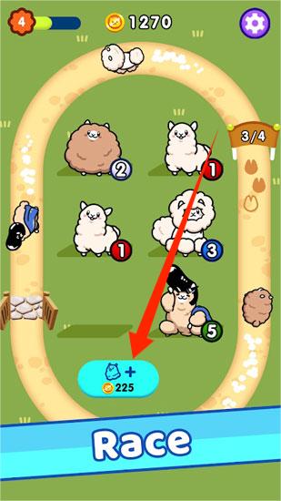 2、安排合成后的羊驼到跑道,参与比赛,通过金币解锁或升级,增强实力。