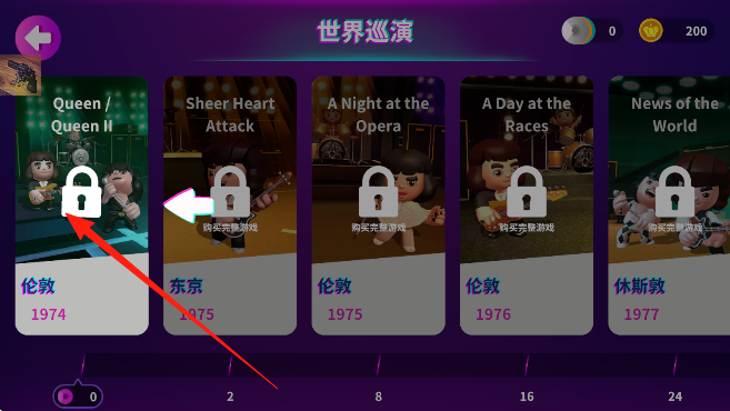 2、档案收集系统:通关解锁乐队未公开的创作手稿演唱会门票等40件历史藏品,可在“摇滚博物馆”中浏览,深入了解皇后乐队的音乐历程。