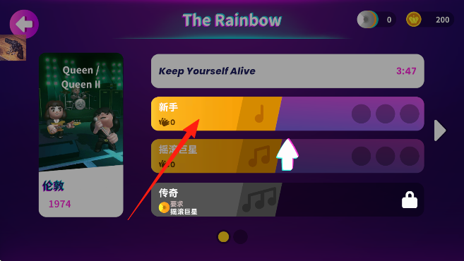 3、角色深度养成:提供超30款乐队成员经典服饰,包括弗雷迪的牙买加国旗披风与罗杰的星空鼓组,穿戴后可提升对应乐器的演奏特效与得分加成。