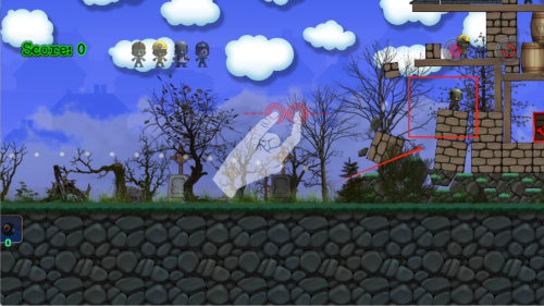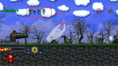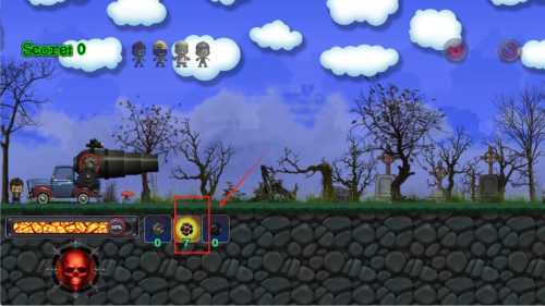 1、游戏开始后注意观察左下角生命值状态,操控蓝色卡车移动至红框选中的道具位置,拾取后能增强炮火威力对抗上方幽灵敌人。