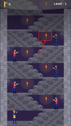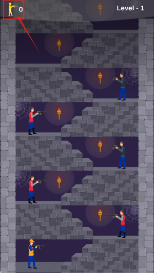 2、观察各层持枪敌人分布,优先消灭被红框标注的Level-1关卡守门人,击败后可解锁上层通道。
