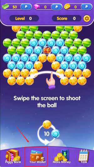 3、通过消除泡泡积累分数提升等级,每完成一关可点击底部More Money领取额外金币奖励,用于解锁新道具。
