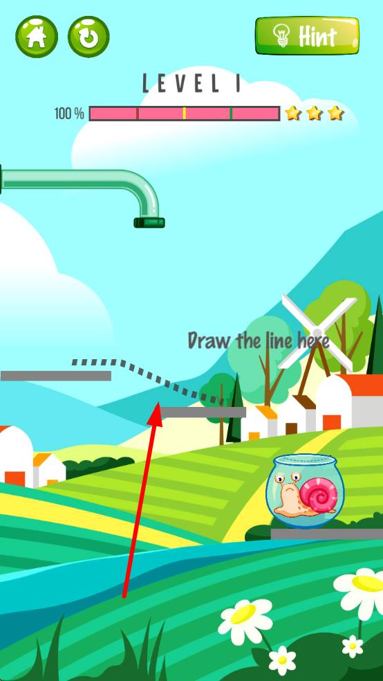 2、创意解谜探索:尝试不同画线角度、形状,利用场景元素,如借助斜坡让水流加速、绕过障碍,挖掘多样通关方法。