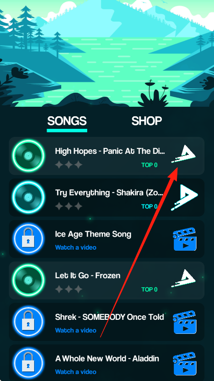 1、进入首关选择经典迪斯科曲目,发光瓷砖随前奏在粉色舞池启动,首个蓝色音符方块出现,滑动屏幕开启首次节奏跳跃。
