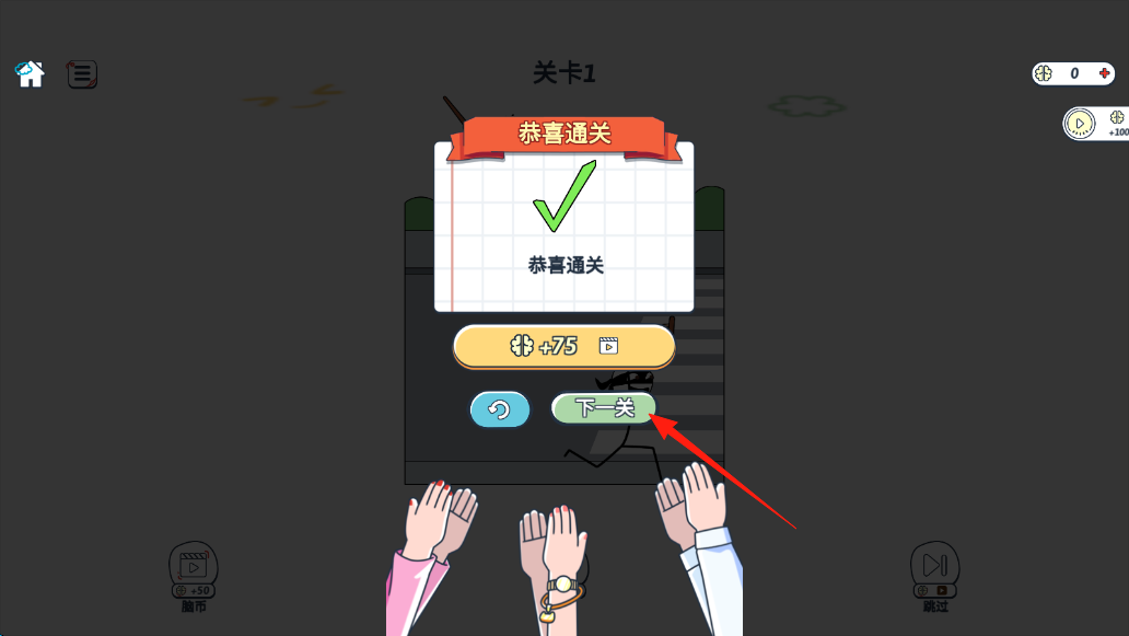 2、通关后点击“下一关”,进入新关卡,遇到难题可考虑用提示功能。
