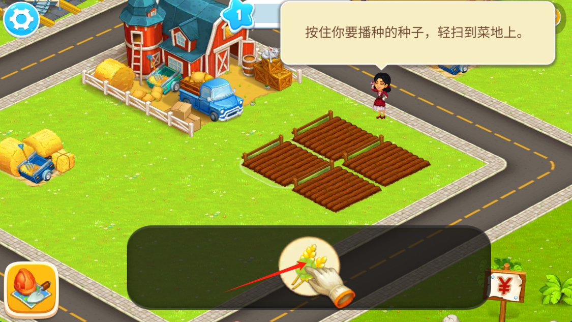1、点击种田,通过动物粪便 fertilize 土地提升肥力,利用连续完成高难度订单触发"农场之星"状态,通过暂停功能规划种植计划。