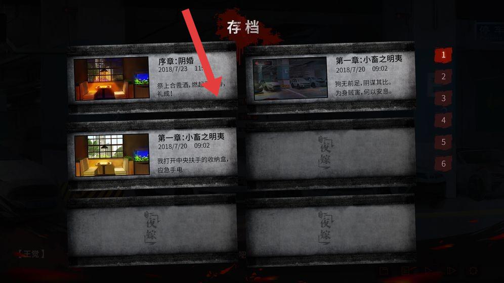 1、在存档界面,选择已解锁的存档(如“序章:阴婚”),点击进入游戏进度,继续探索剧情。